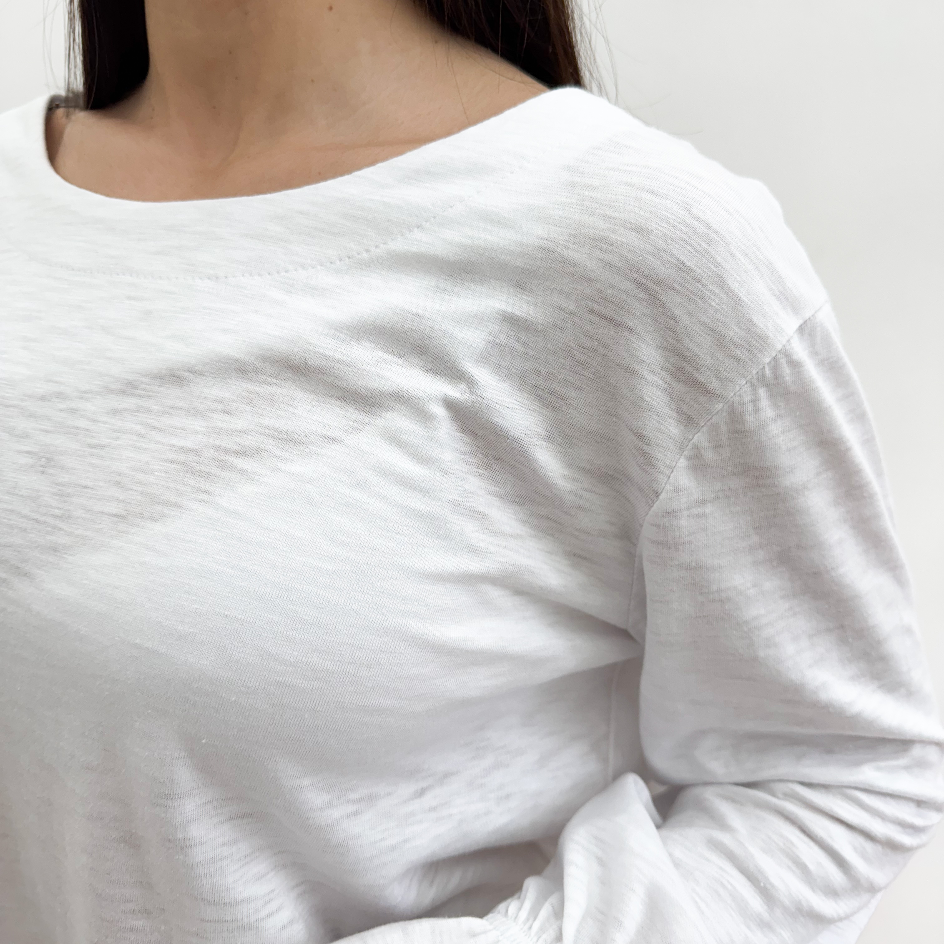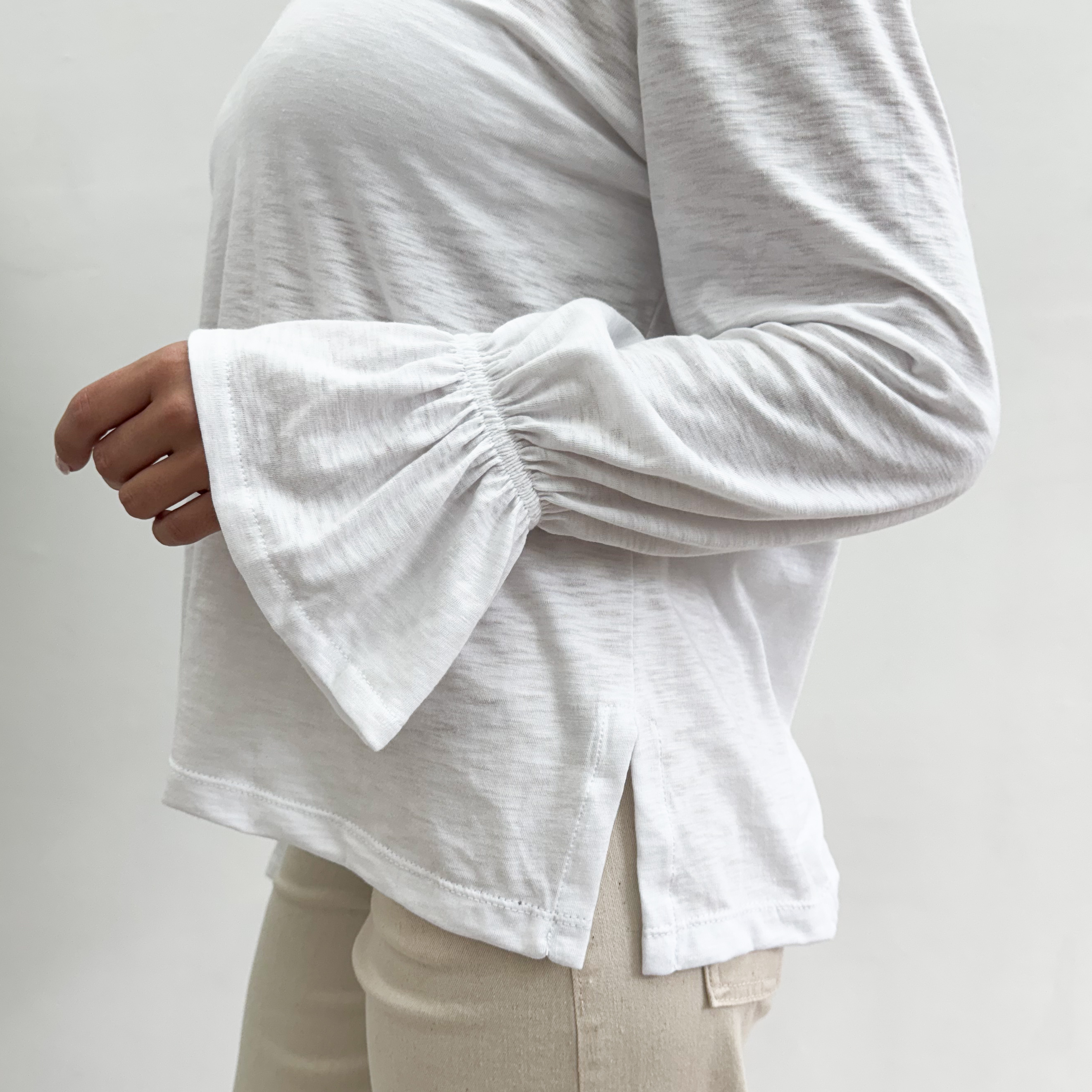 La BLUSA SERENA FLAMÉ es una blusa divina, de escote redondo con la muñeca fruncida que genera un efecto de voladitos en los extremos de las mangas. Está hecha en jersey de algodón flamé, un material liviano y súper agradable al tacto. Es una prenda súper versátil y que eleva por completo el outfit!