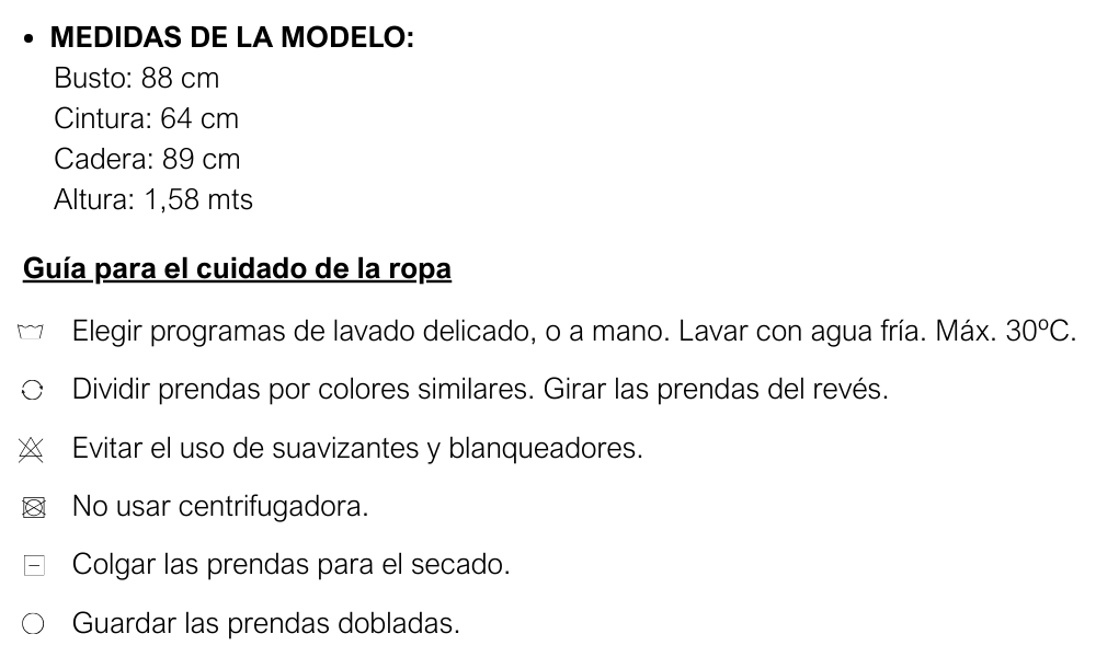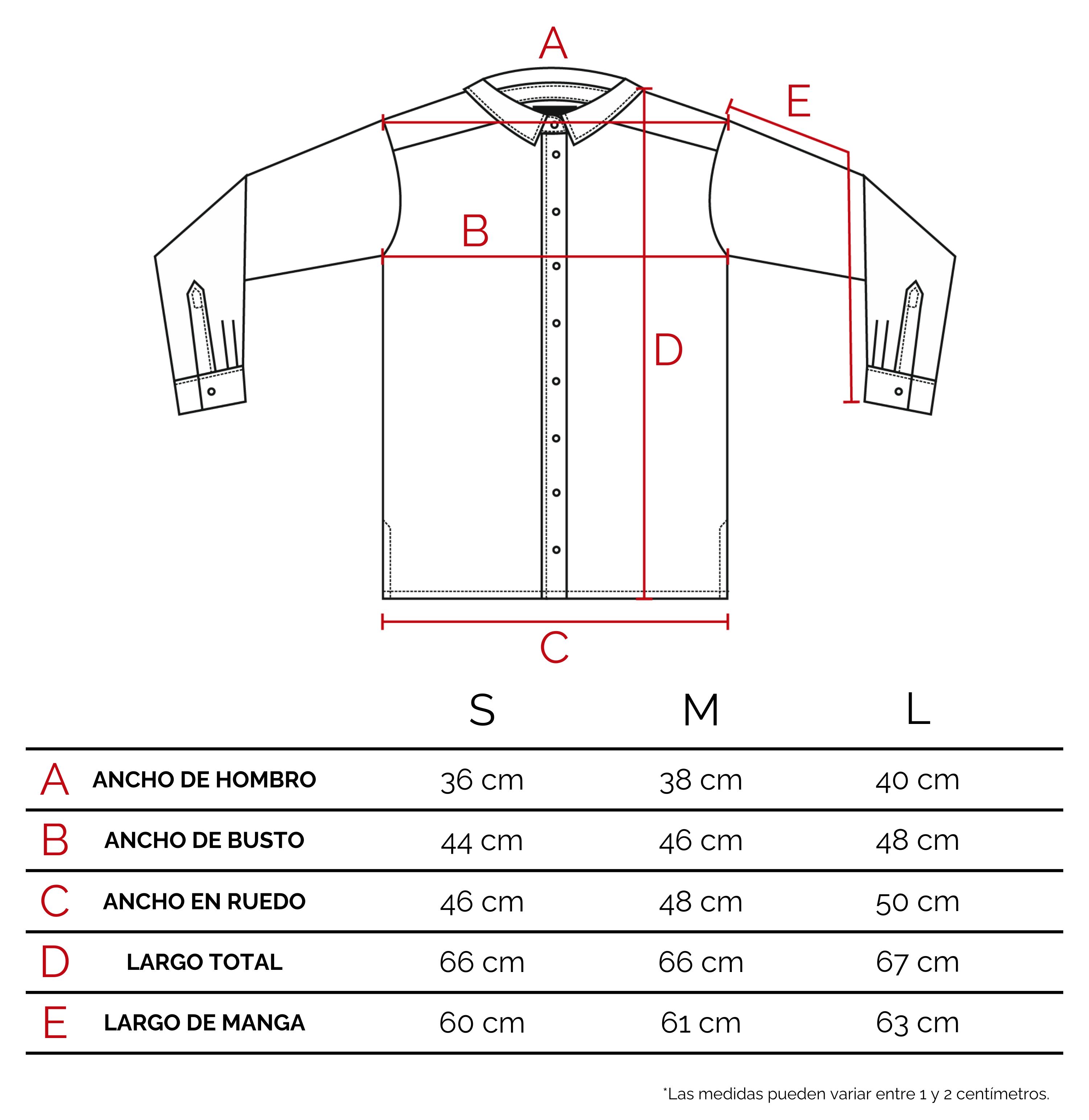 Te recomendamos que agarres una prenda tuya, de características similares a éste producto. Extendela sobre una superficie plana, y con un centímetro tomá las medidas sobre los puntos como lo indicamos en el dibujo. De esta manera vas a poder tener una referencia del tamaño de la prenda.