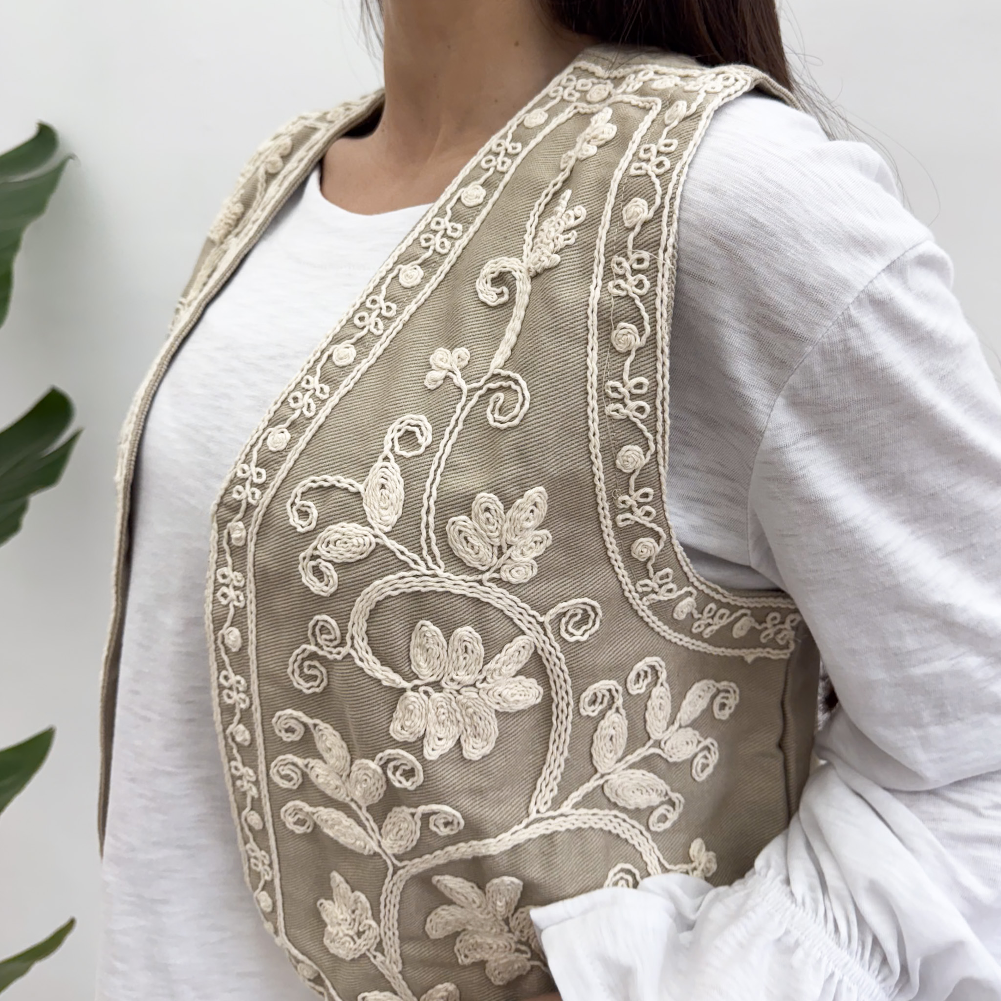 El CHALECO AMELIE es un chaleco DI-VI-NO!! Está hecho en gabardina bordada, y tiene un diseño precioso que lo vuelve único! Es sin dudas una prenda que va a elevar por completo el look y le va a dar un toque fresco y distintivo! Va perfecto con una base como una blusa, una remera, una musculosa, una camisa, un top… solo es cuestión de combinarlo como más te guste!