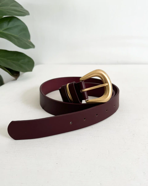 Cinturón liso con hebilla de metal dorada hecho en PU.