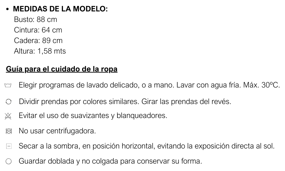 Te recomendamos que agarres una prenda tuya, de características similares a éste producto. Extendela sobre una superficie plana, y con un centímetro tomá las medidas sobre los puntos como lo indicamos en el dibujo. De esta manera vas a poder tener una referencia del tamaño de la prenda.
