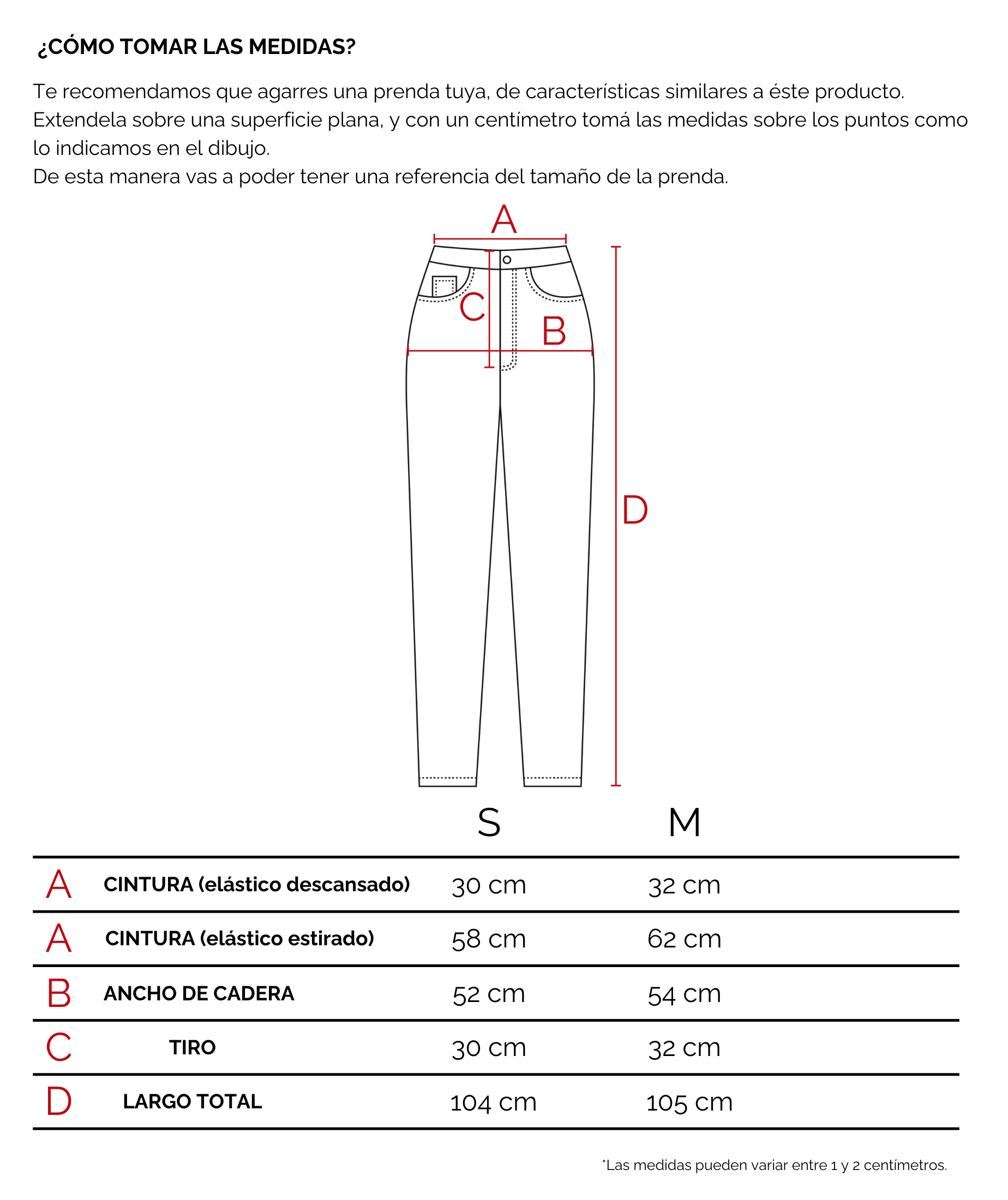 CARACTERÍSTICAS Y DETALLES: Es un pantalón de pierna ancha, de tiro medio/alto, con elástico en la cintura y bolsillos en el delantero.