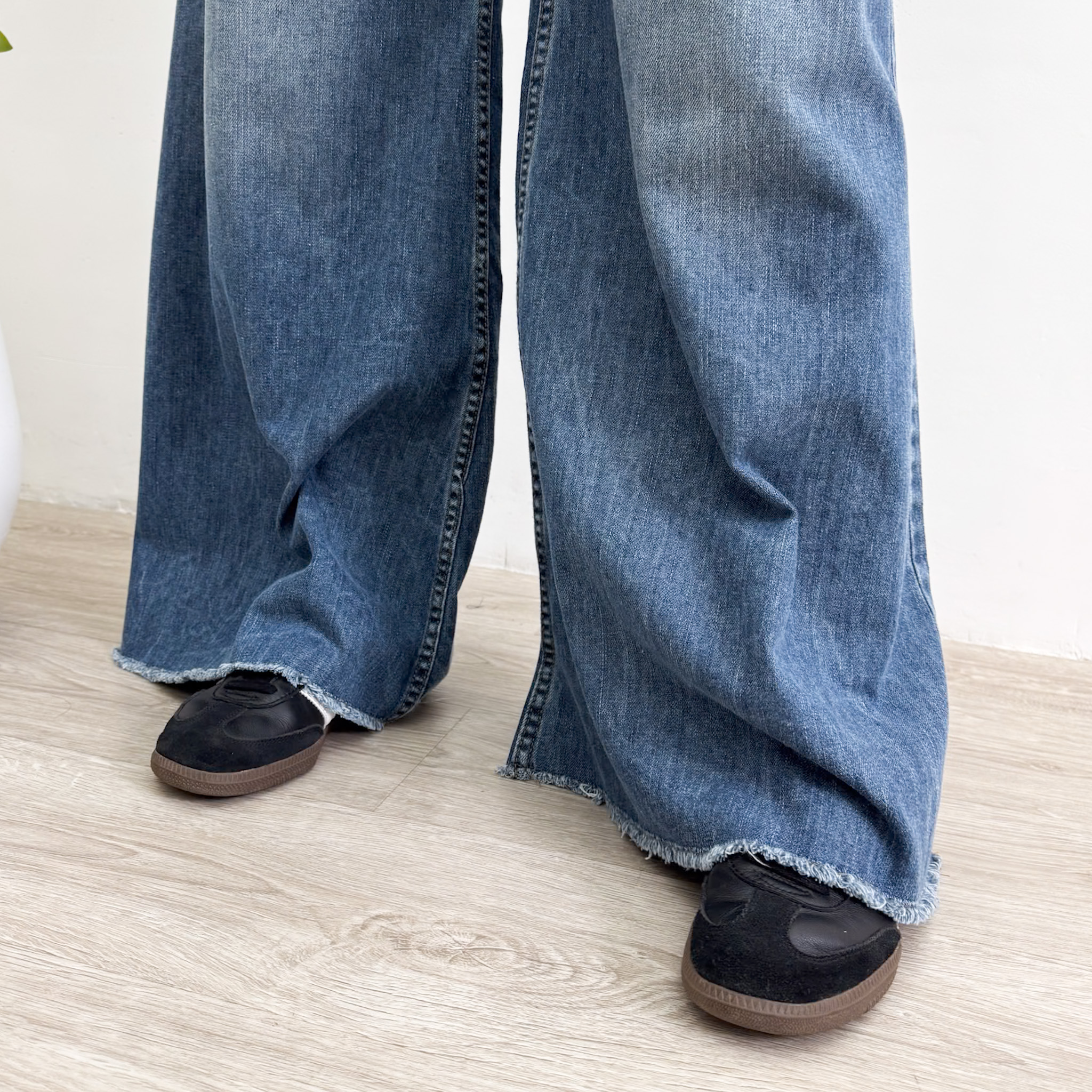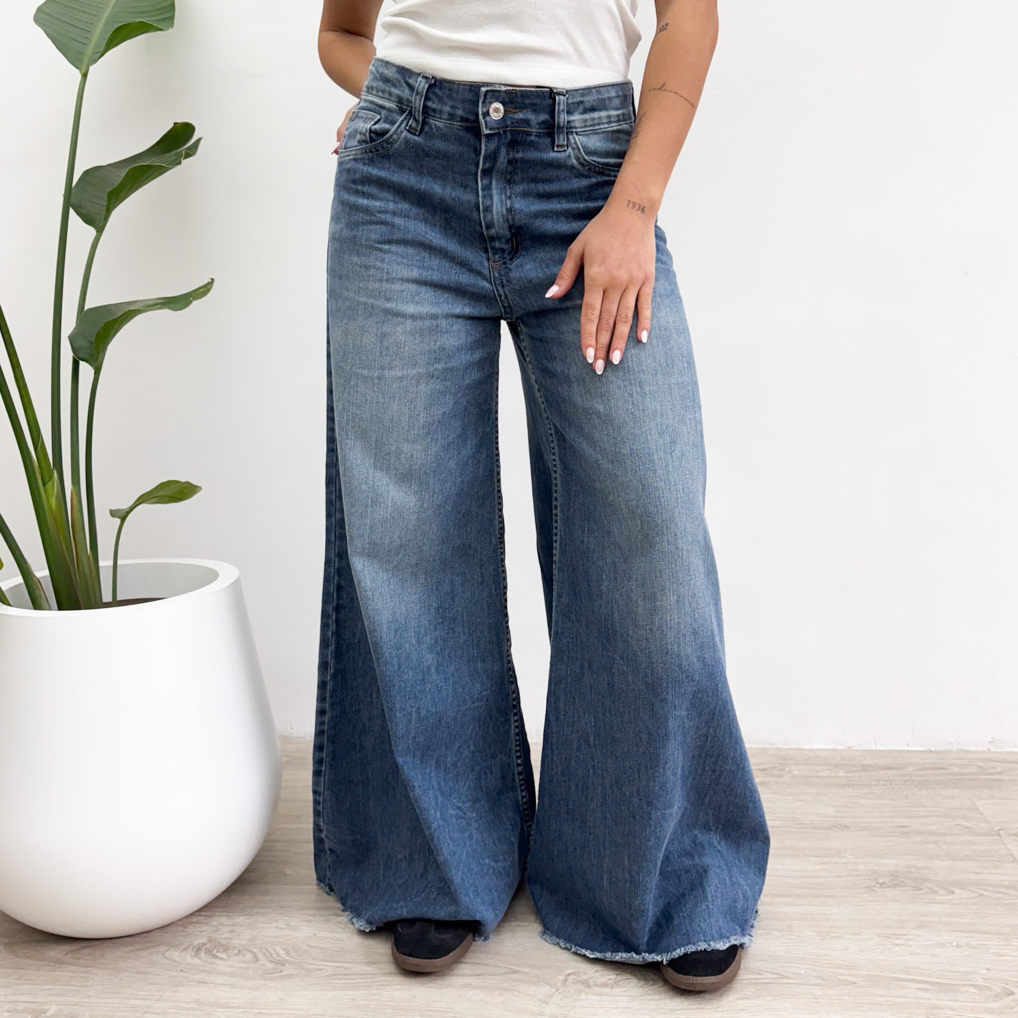 El PALAZZO OCTAVIO es ese pantalón de denim que no puede faltar en el fondo de armario! De pierna bien amplia, tiro alto y ruedo desflecado. Hecho en denim rígido, que permite mantener la forma con el tiempo y el uso. Es un básico pero mega canchero!