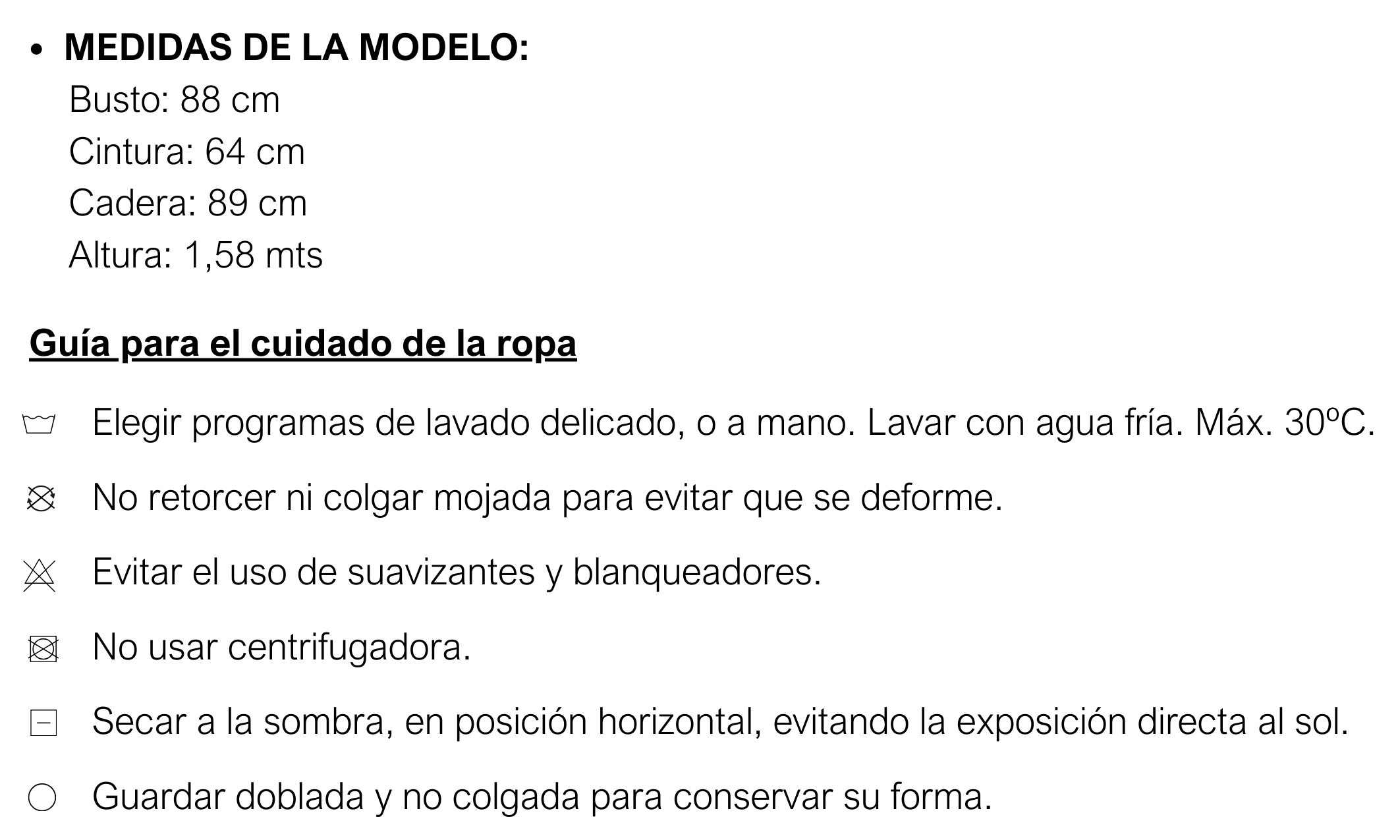 Te recomendamos que agarres una prenda tuya, de características similares a éste producto. Extendela sobre una superficie plana, y con un centímetro tomá las medidas sobre los puntos como lo indicamos en el dibujo. De esta manera vas a poder tener una referencia del tamaño de la prenda.