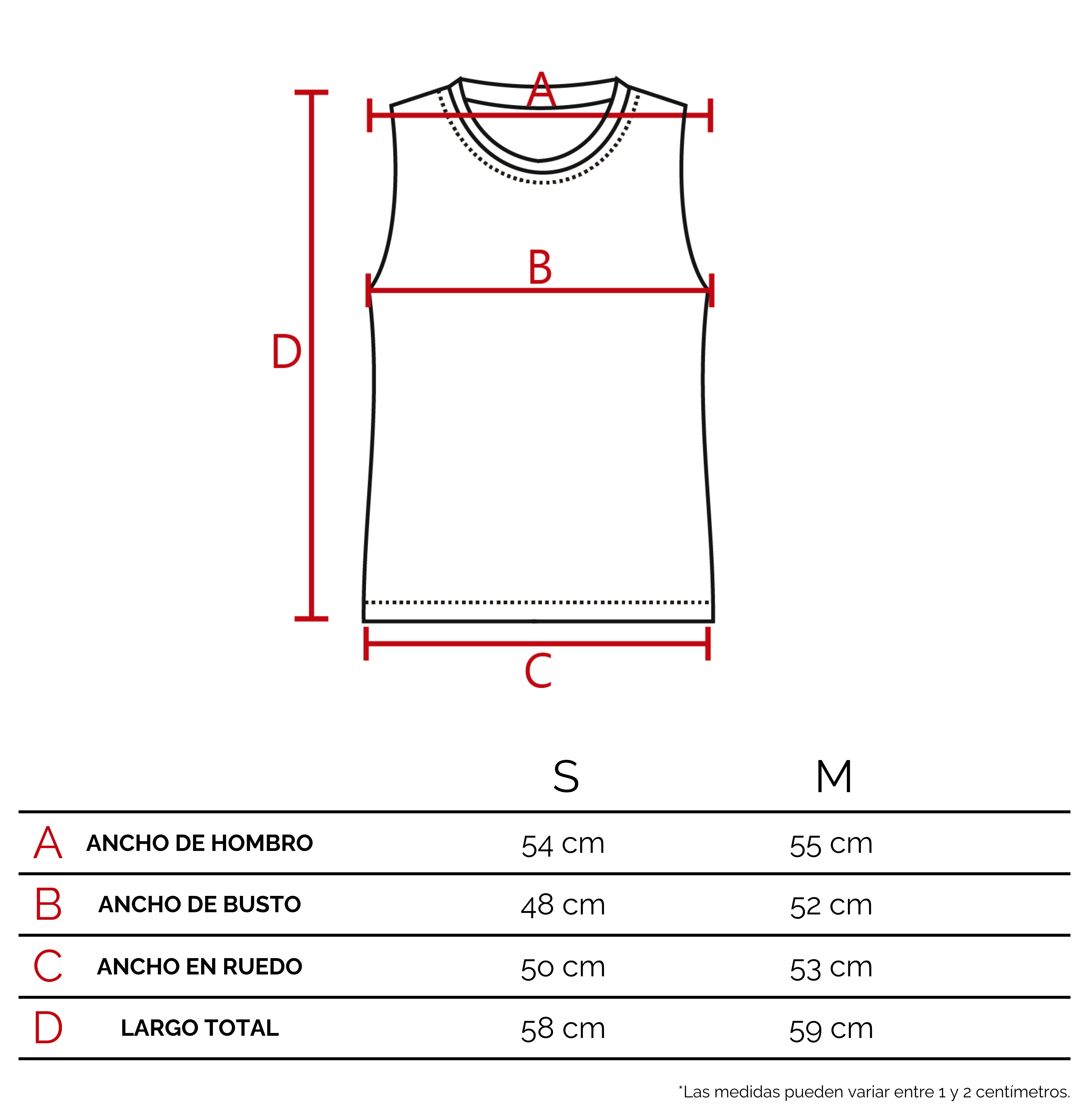 Te recomendamos que agarres una prenda tuya, de características similares a éste producto. Extendela sobre una superficie plana, y con un centímetro tomá las medidas sobre los puntos como lo indicamos en el dibujo. De esta manera vas a poder tener una referencia del tamaño de la prenda.