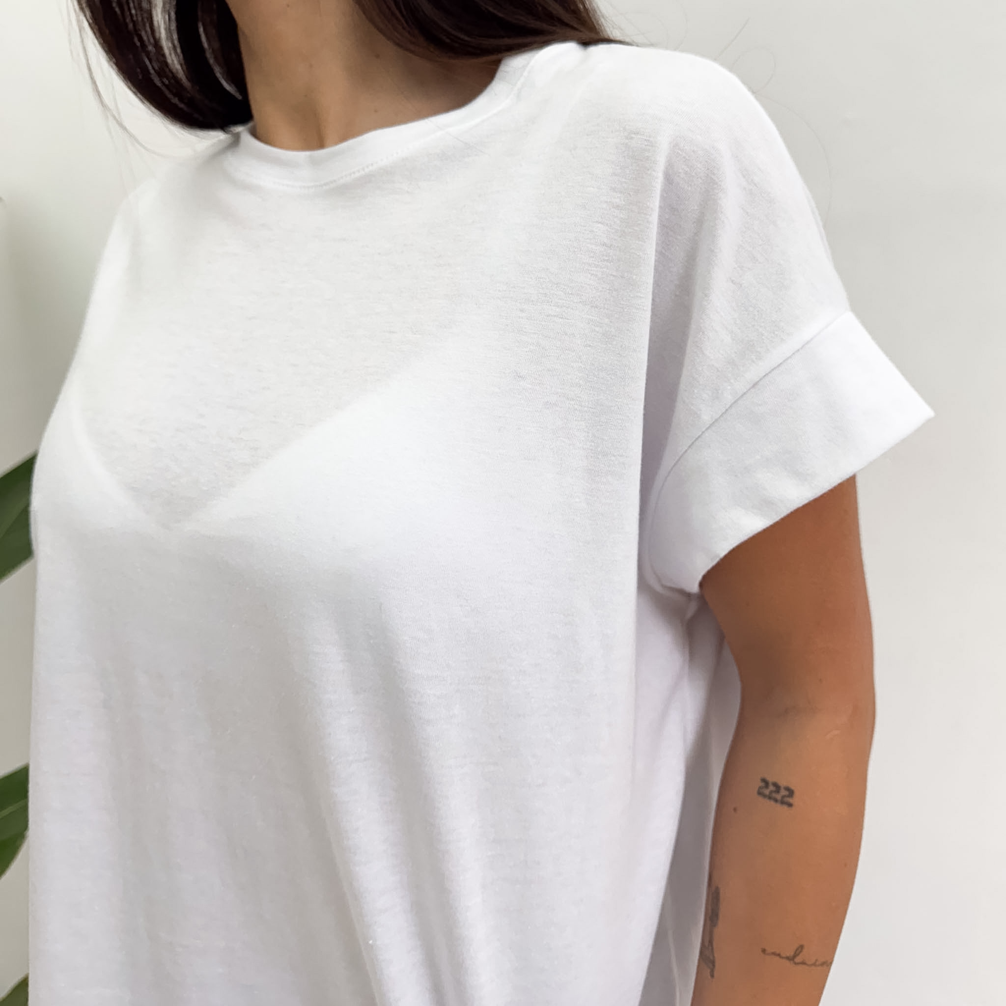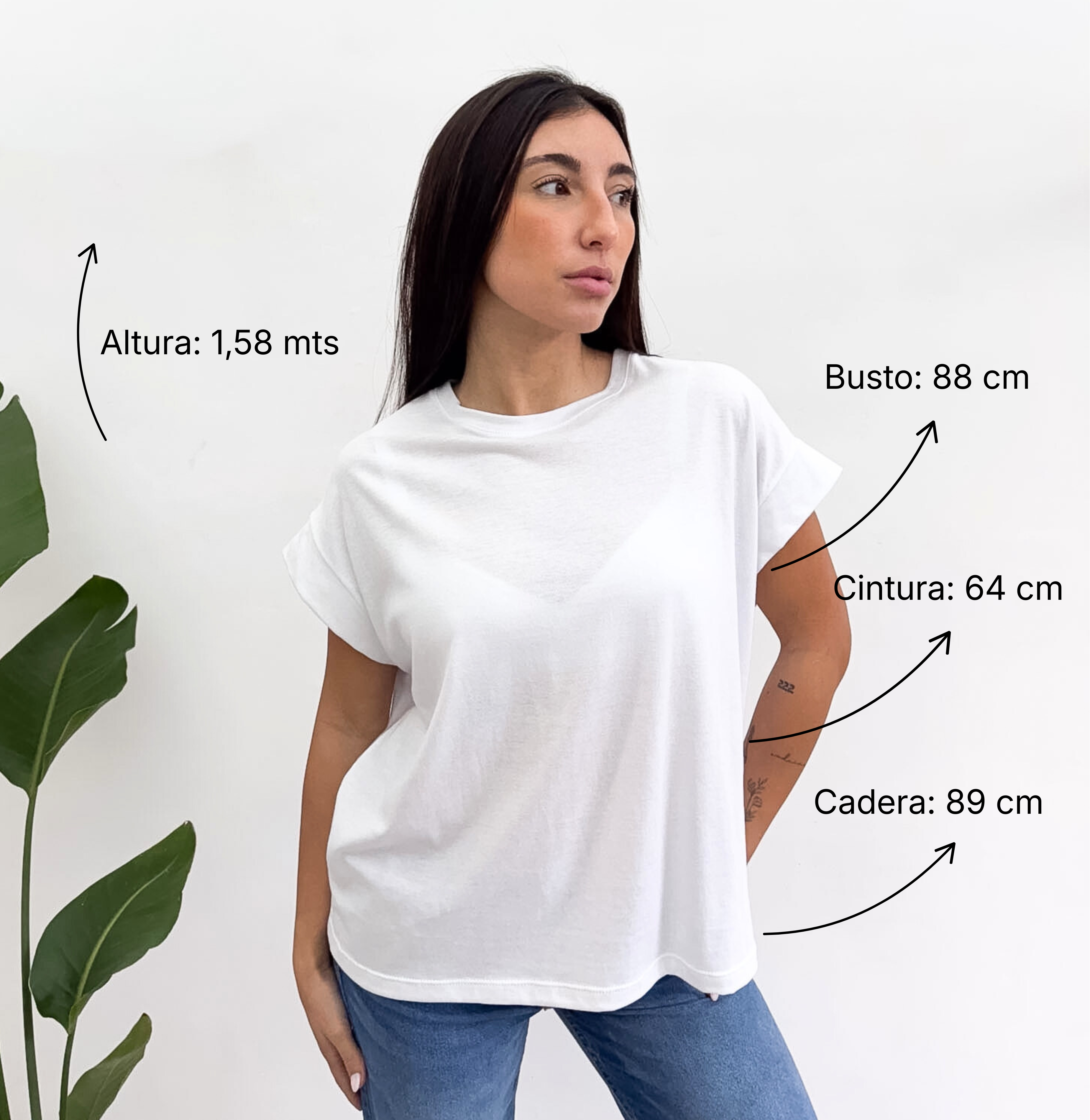 Confeccionada jersey 100% algodón, y es un tipo de algodón más bien pesado que le da más estructura al modelo.