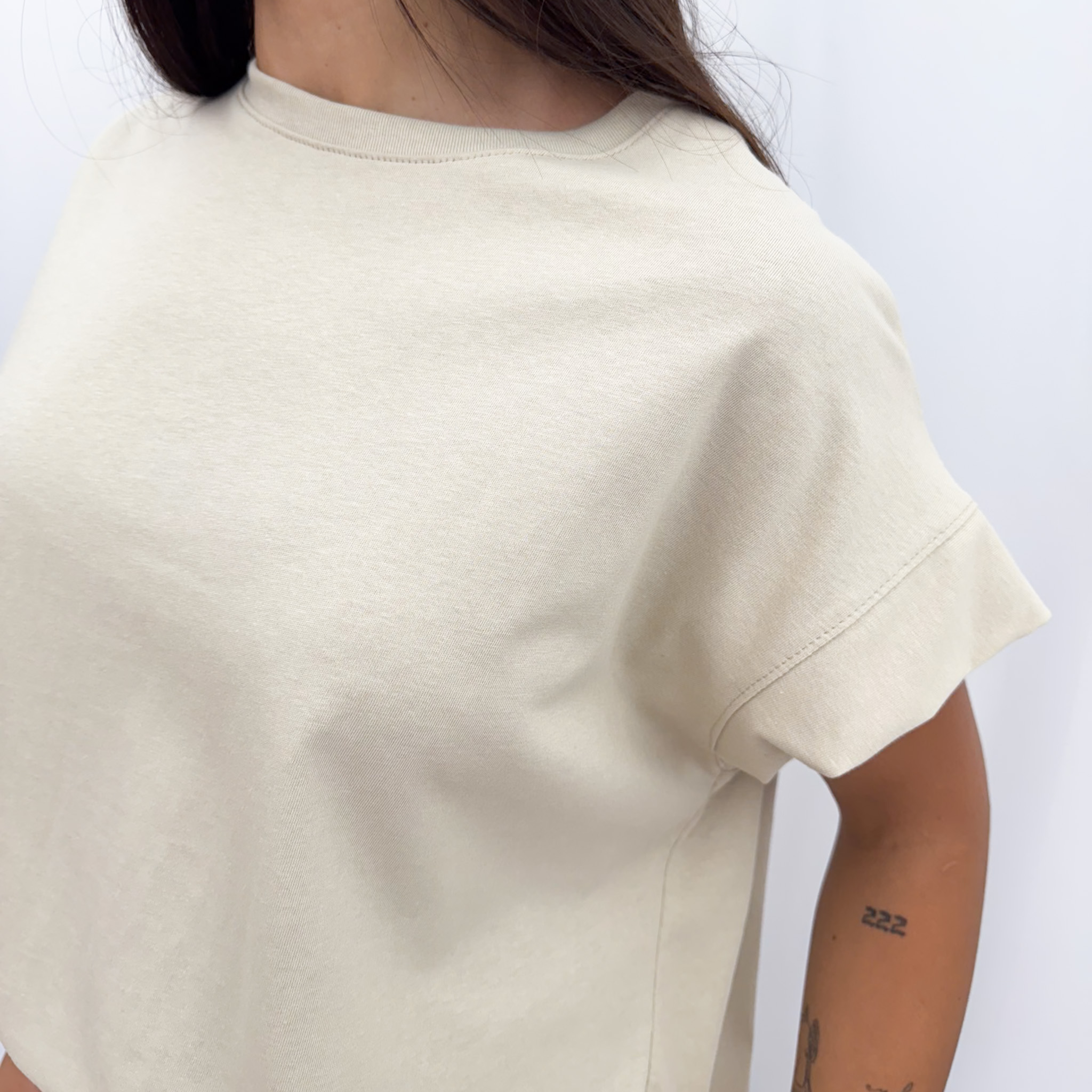 Confeccionada en un jersey 100% algodón, súper suave y de alta calidad, y tiene la particularidad de que es un poco más pesado que el algodón común, lo que ayuda a darle más estructura a la prenda.