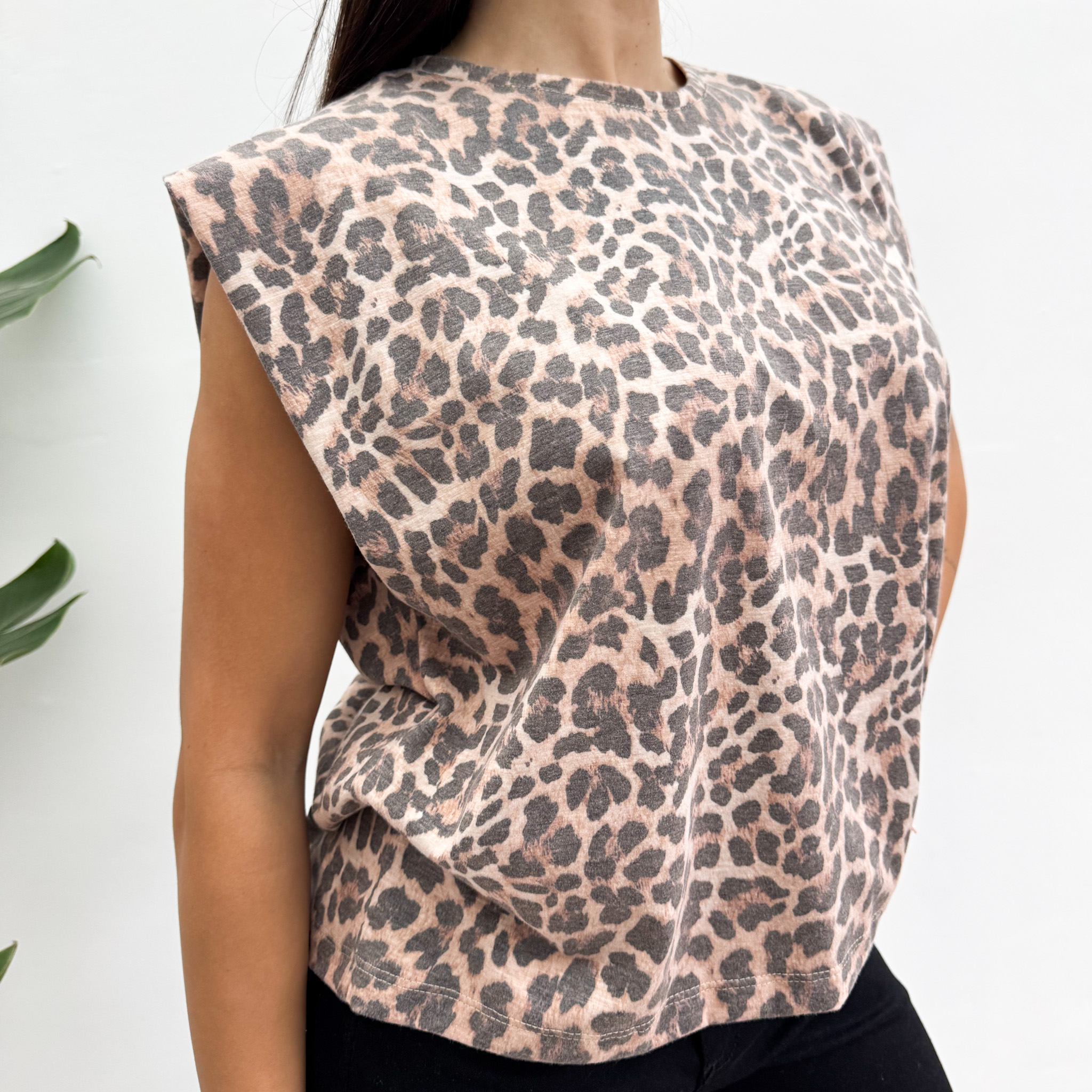 La REMERA PETRA PRINT es una remera sin mangas, con un rebatido que simula una hombrera. Súper canchera y el PLUS de estar hecha en jersey de algodón flamé PRINT, un estampado que no pasa de moda y siempre eleva cualquier look! Es de escote redondo y de corte amplio. Es la remera perfecta para agregarle personalidad y estilo a nuestro armario!