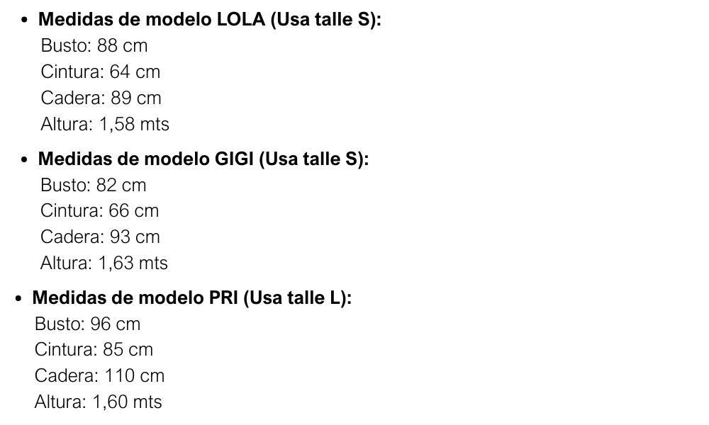 TALLES S, M, L y XL