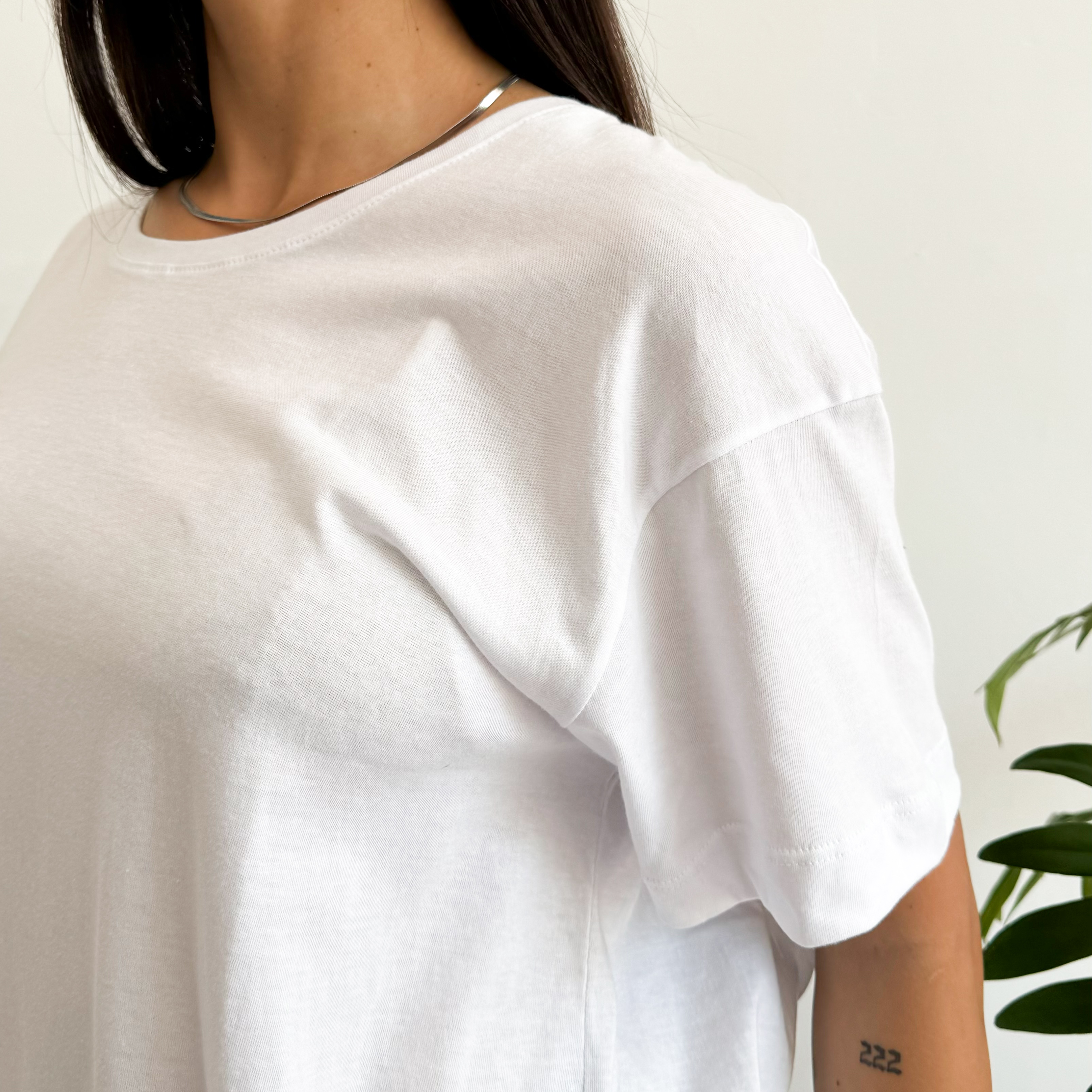 El REMERÓN ANTU es un remerón mega canchero, amplio con escote redondo, hecha en jersey de algodón de excelente calidad. Tiene tajos en los costados que le dan mucha onda! Es básica pero le da un toque muy ondero a cualquier outfit!