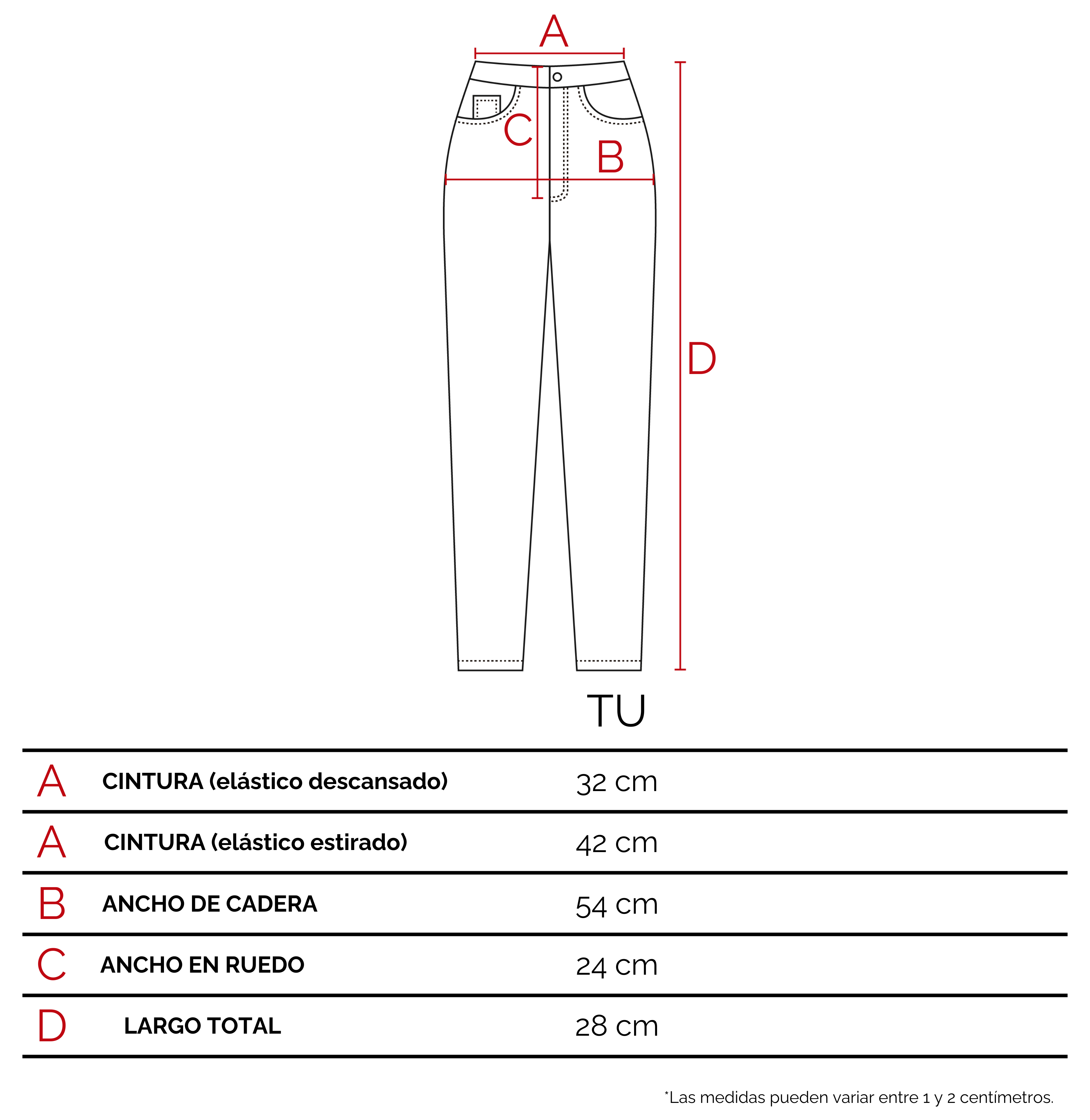 Te recomendamos que agarres una prenda tuya, de características similares a éste producto. Extendela sobre una superficie plana, y con un centímetro tomá las medidas sobre los puntos como lo indicamos en el dibujo. De esta manera vas a poder tener una referencia del tamaño de la prenda.
