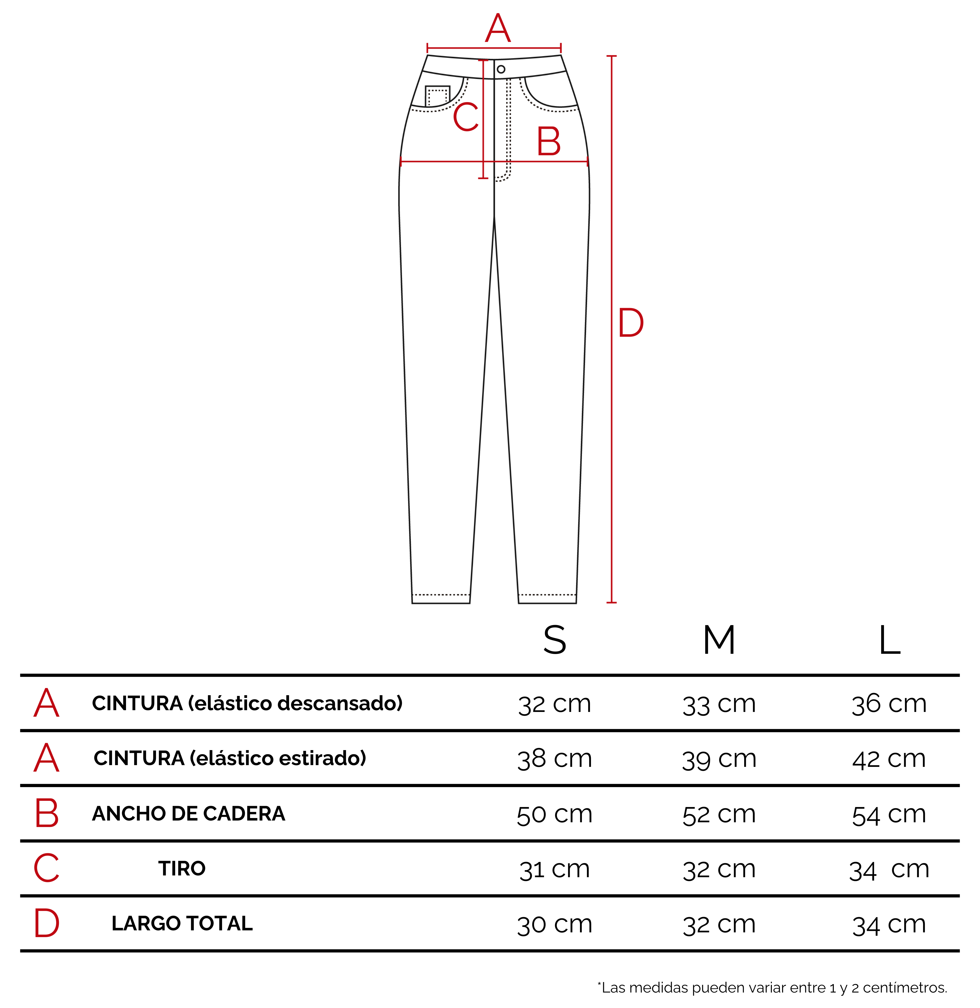 Te recomendamos que agarres una prenda tuya, de características similares a éste producto. Extendela sobre una superficie plana, y con un centímetro tomá las medidas sobre los puntos como lo indicamos en el dibujo. De esta manera vas a poder tener una referencia del tamaño de la prenda.