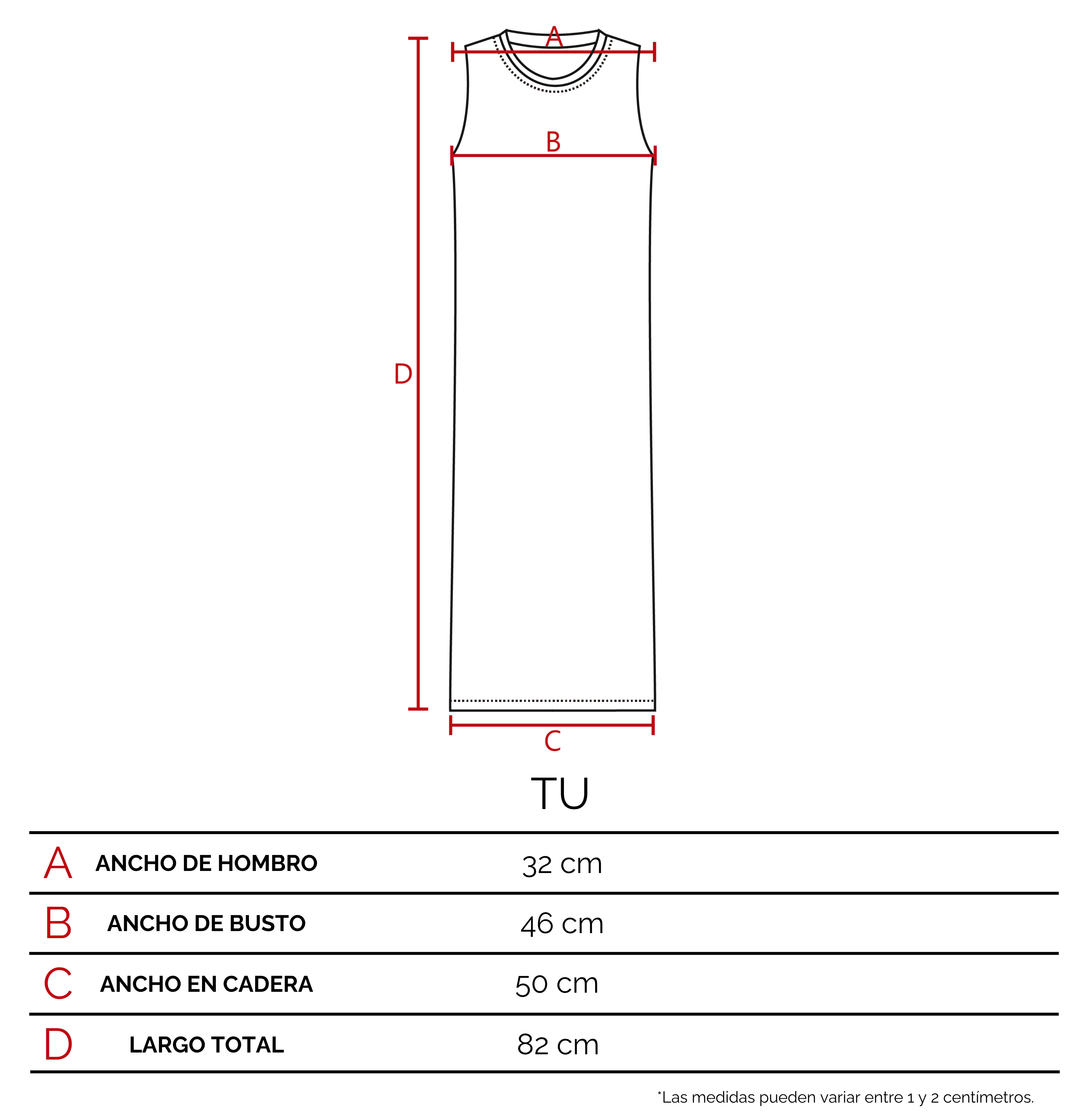 Te recomendamos que agarres una prenda tuya, de características similares a éste producto. Extendela sobre una superficie plana, y con un centímetro tomá las medidas sobre los puntos como lo indicamos en el dibujo. De esta manera vas a poder tener una referencia del tamaño de la prenda.
