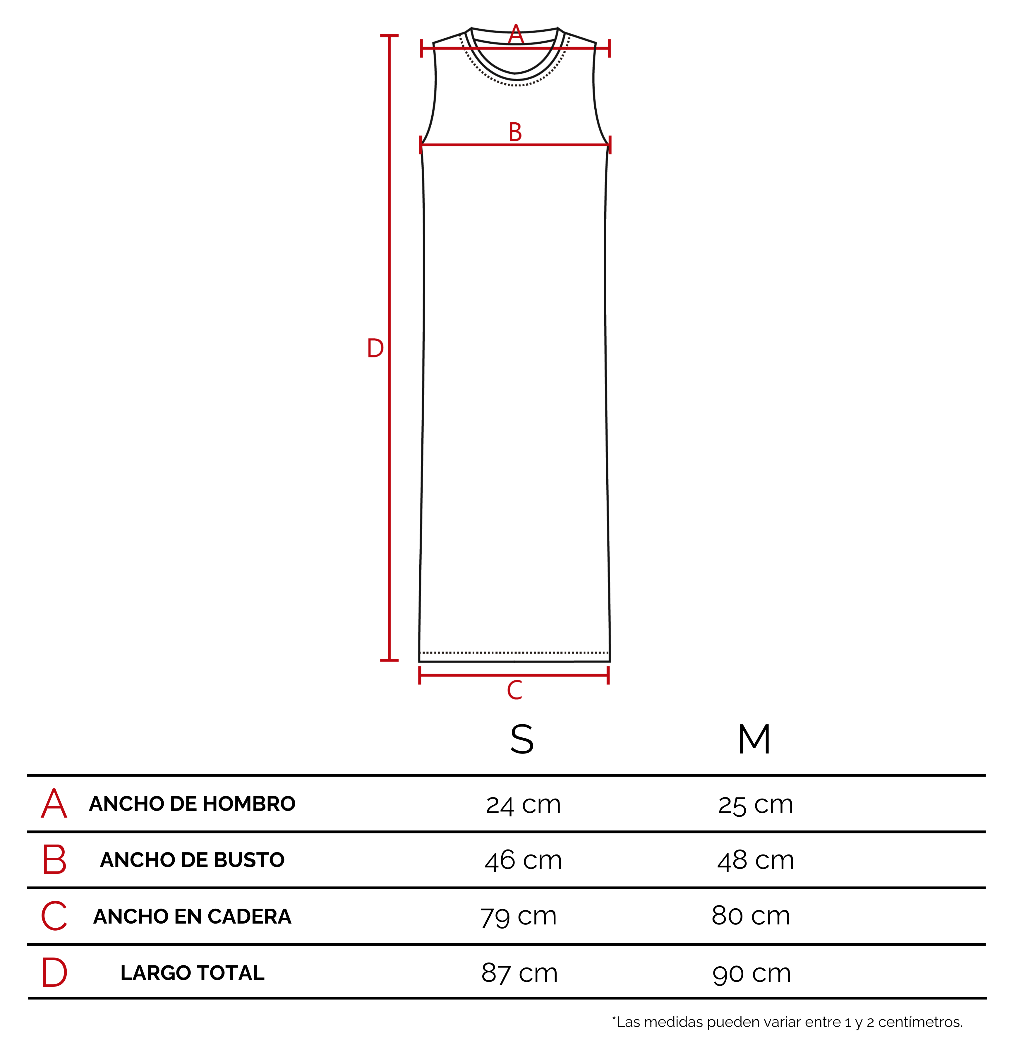 Te recomendamos que agarres una prenda tuya, de características similares a éste producto. Extendela sobre una superficie plana, y con un centímetro tomá las medidas sobre los puntos como lo indicamos en el dibujo. De esta manera vas a poder tener una referencia del tamaño de la prenda.